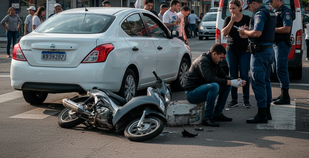 Motociclista fica ferido após colisão com carro no Centro de Birigui