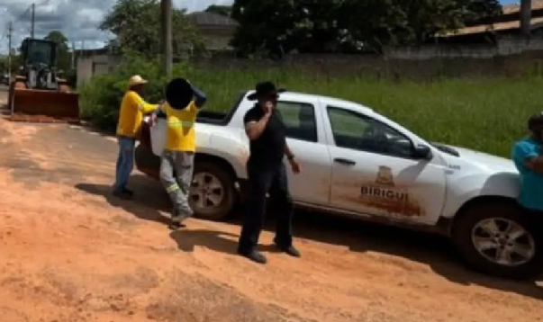 Segundo a denúncia, máquinas e servidores da prefeitura teriam sido usados na duplicação da Av. Paulo da Silva Nunes, obra que seria de responsabilidade de um loteamento privado.