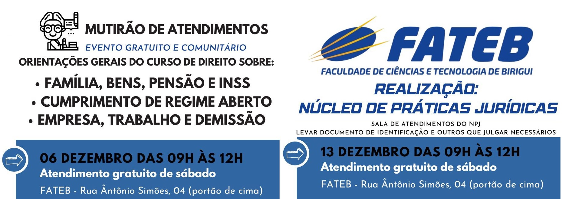 por Rafael Zago A FATEB – Faculdade de Ciências e Tecnologia de Birigui – promove nos dias 06 e 13 deste mês (sábados) um mutirão de atendimento