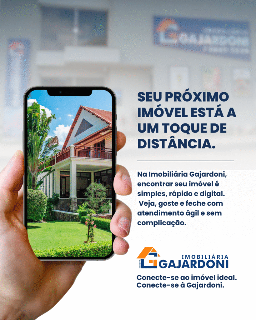 Na Gajardoni, encontrar o imóvel ideal é simples, rápido e digital. Pelo celular, tablet ou computador, o cliente acessa imóveis selecionados, informações claras e conta com atendimento ágil, sem complicação.