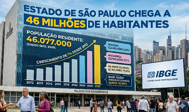 São Paulo – O estado de São Paulo teve aumento de quase 3 milhões de habitantes em 13 anos. Em 2025, a população paulista era de 46,077 milhões de pessoas. Os dados são PNAD Contínua do Instituto Brasileiro de Geografia e Estatística (IBGE). Os idosos (com 60 anos ou mais) foram a faixa etária com maior número de moradores: 8,074 milhões, o equivalente a 17,6% do total.