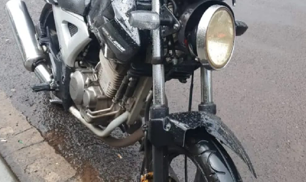 A motocicleta teve danos no farol, para-lamas dianteiro e traseiro, painel e câmbio. Já o micro-ônibus não apresentou danos aparentes.