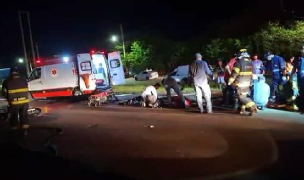 Araçatuba – Dois homens morreram em um grave acidente de trânsito registrado na noite deste sábado (25), na Rodovia Elieser Montenegro Magalhães (SP-463), em Araçatuba. De acordo com o boletim de ocorrência, o caso foi registrado como homicídio culposo e lesão corporal culposa na direção de veículo automotor. O motorista envolvido no atropelamento inicial não foi identificado e deixou o local sem prestar socorro. O acidente aconteceu por volta das 18h45, na altura do quilômetro 50 da rodovia, nas proximidades do bairro Chácaras Arco-Íris. Segundo o registro policial, o ciclista Flávio Cristiano Grizante, de 49 anos, seguia pela via quando foi atingido por um veículo ainda não identificado. Na sequência, uma motocicleta Honda/XRE 300, conduzida por Ricardo de Oliveira Baltazar, de 31 anos, acabou passando sobre o corpo da vítima que estava na pista, fazendo com que o motociclista perdesse o controle da direção e sofresse a queda. Com o impacto, a motocicleta chegou a pegar fogo, mobilizando equipes do Corpo de Bombeiros da Polícia Militar do Estado de São Paulo e do Serviço de Atendimento Móvel de Urgência, que foram acionadas para o atendimento da ocorrência. Flávio morreu ainda no local. Ricardo chegou a ser socorrido com vida, mas não resistiu aos ferimentos e morreu após o atendimento inicial. Uma mulher de 25 anos, que estava na garupa da motocicleta, sofreu ferimentos e foi encaminhada para atendimento médico. O estado de saúde dela não foi informado. A perícia técnica esteve no local e as circunstâncias do acidente serão investigadas. Os corpos das vítimas foram encaminhados para exames necroscópicos, enquanto a polícia trabalha para identificar o condutor responsável pelo atropelamento inicial.