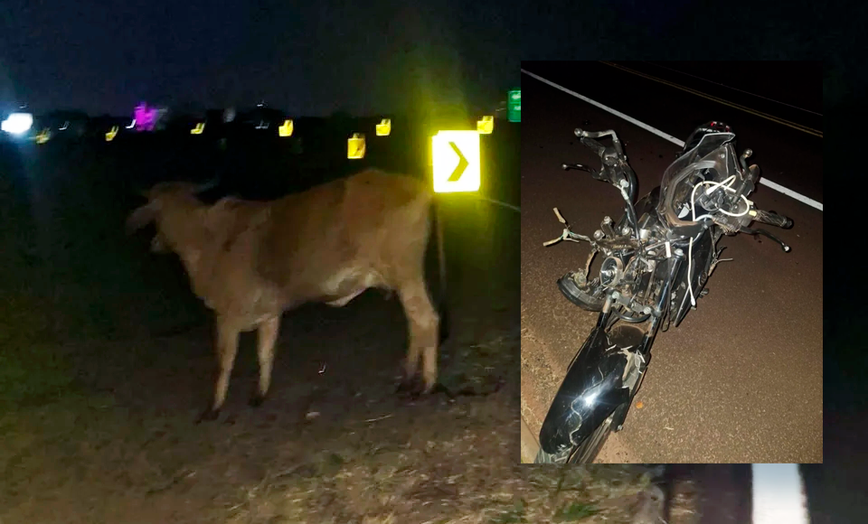 Um motociclista por aplicativo, de 38 anos, ficou ferido na madrugada desta segunda-feira (6) após colidir com bovinos soltos na Rodovia Senador Teotônio Vilela, conhecida